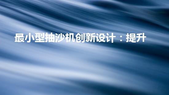 最小型抽沙機創新設計:提升效率的抽沙設備如何改變產業格局?
